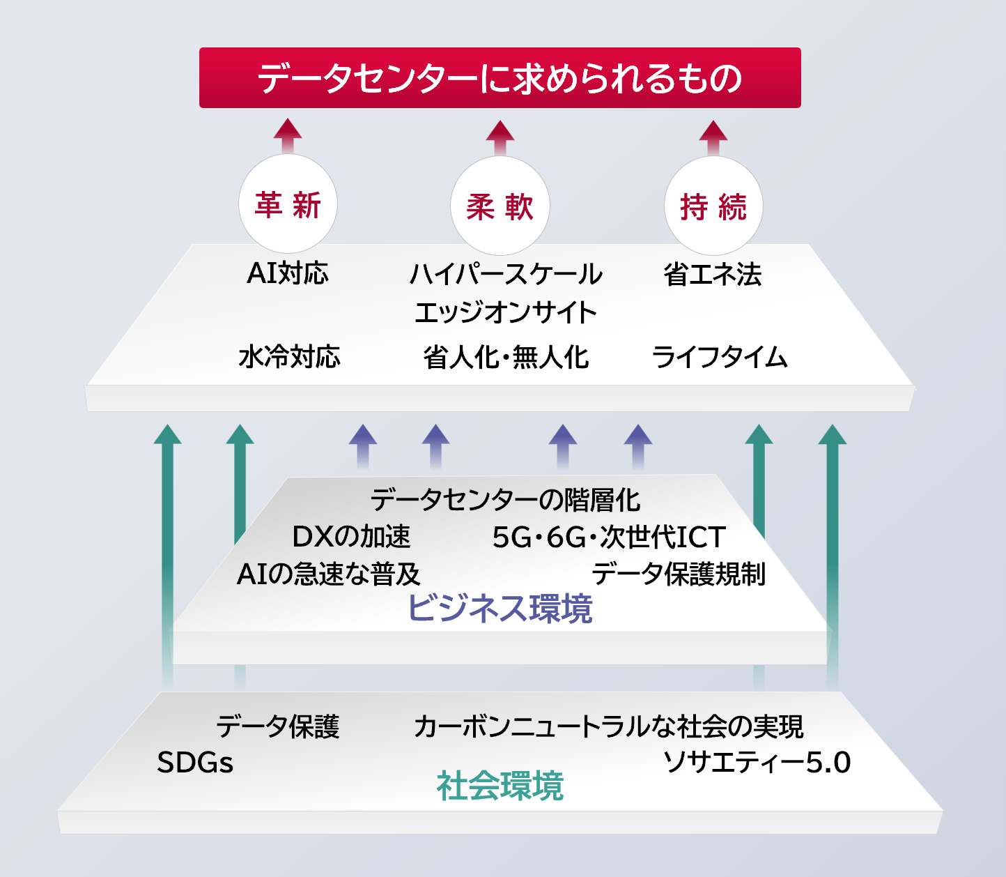 近年、「革新×柔軟×持続」の視点で、急速に変化する社会・ビジネス環境に適応するデータセンターが求められています。